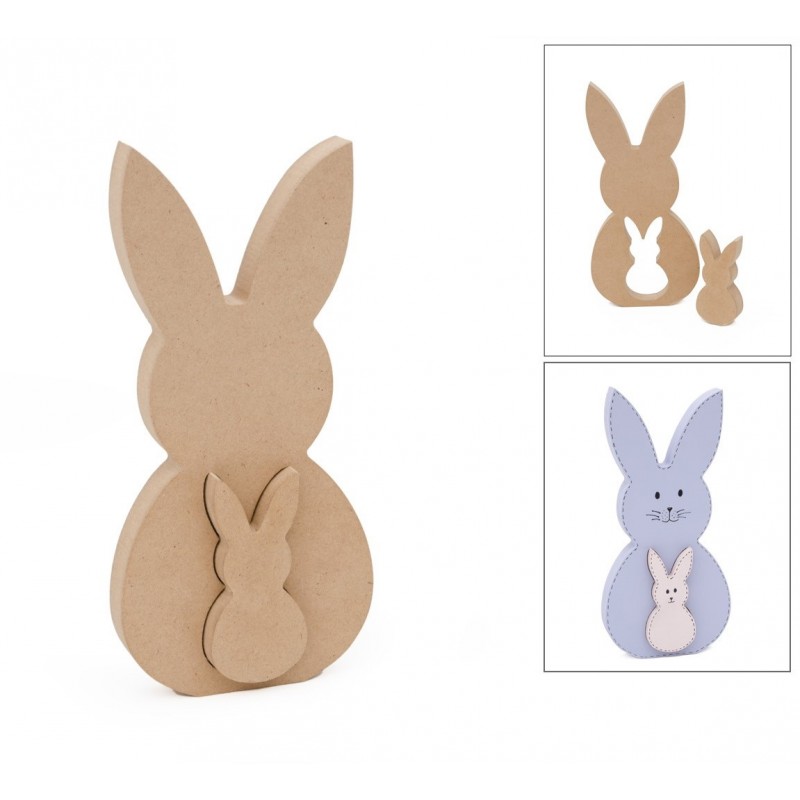 Conejo Y Conejo Bebe De Madera Manualidades Creyman