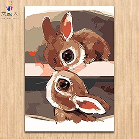 Pintar Por Numeros Adultos Ninos Conejo De Dibujos Animados Pintura Al Oleo Diy Lienzo Pintura Por Numeros Kits Decoracion De Pared Regalos 40x50cm Sin Marco Amazon Es Hogar