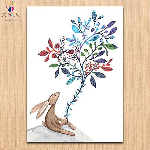 Kykdy Conejos Pequenos Pintura Conejo Pintura Dibujos Para Colorear Numeros Con Kits De Pintura Numeros De Animales Pintar Numeros Sobre Lienzo 0050 Conejo Y Arbol 40x50 Con Marco Amazon Es Hogar