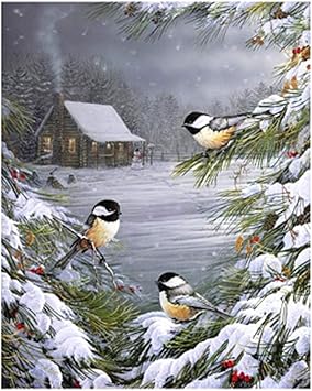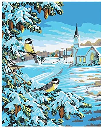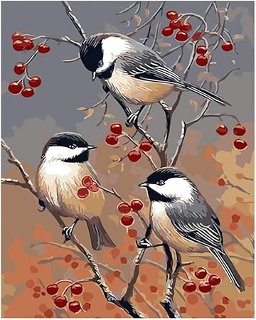 Wacydsd Pintar Por Numeros 2 Pajaros En Invierno Pintura Al Oleo Pintada A Mano Diy Para Las Ilustraciones Caseras De La Decoracion De La Pared Sin Marco Amazon Es Juguetes Y Juegos