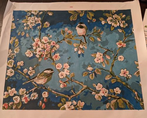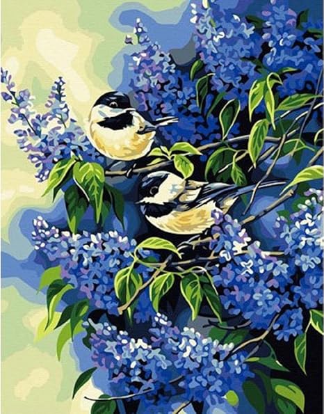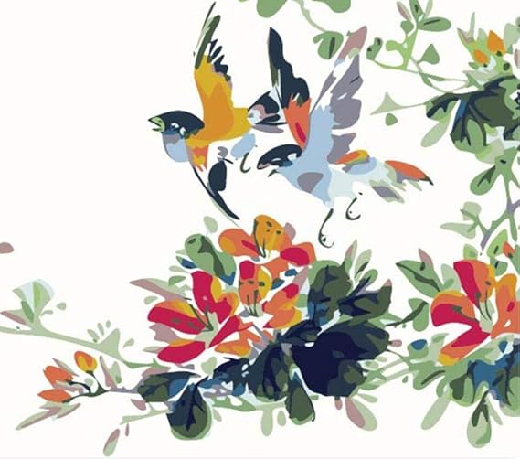 Aijj Pintar Por Numeros Adultos Diy Pajaros Picoteando Flores Tema De Kit De Numeracion De Arte Vivo Europeo 40x50cm En Marco Lmo147 No Frame Amazon Es Hogar