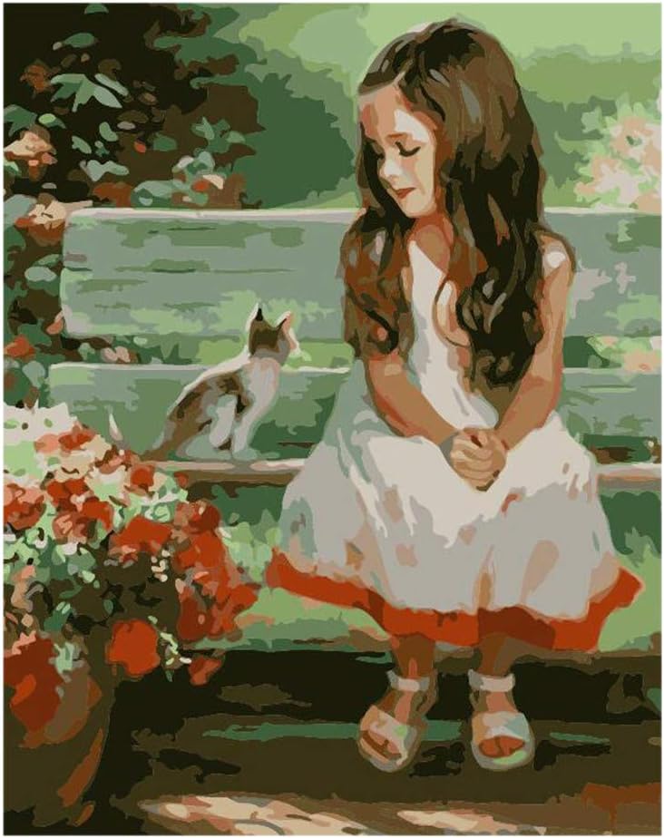 Pintando Ninos Por Numero Parque Nina Y Gato Dibujo Para Colorear Moderno Kits De Bricolaje Obra De Arte Casa Regalo Sin Marco 40x50cm Amazon Es Hogar
