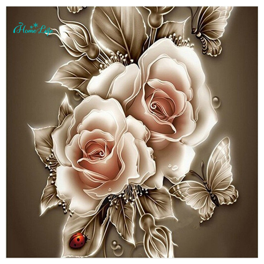 Pintar Por Numeros Kit Blanco Flor Solitaria Rose Peonia 40cmx50cm Lona Ebay