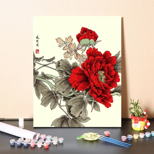 40 50cm Beleza Peonia Flores Diy Pintura Por Numero Kit Digital Canvas Painting Home Decor Newchic