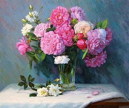 Wowdecor Kit De Pintura Por Numeros Para Ninos Adultos Pintura De Numeros Flores De Peonia Rosa Ramo De 40 6 X 50 8 Cm Frameless Amazon Es Hogar
