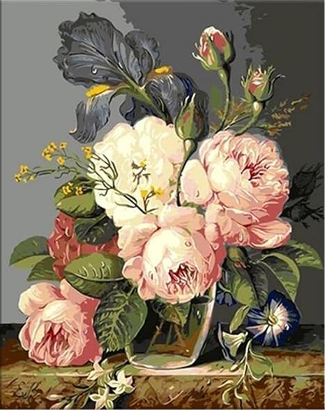 Amazon Com Rosa Flores De Peonia Pintura Por Numeros Kits Para Adulto Ninos De Bricolaje Pintura Por Numero Para Casa Decoracion De La Pared 16 X20 Sin Montar Arte Manualidades Y Costura