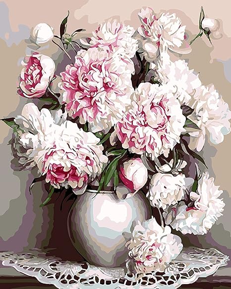 Pintar Por Numeros Hagalo Usted Mismo Kit Para Adultos Florero Con Peonias Ebay