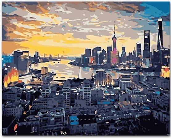Lamamag Pintar Por Numeros Ciudad Cielo Paisaje Diy Pintura Por Numeros Kits Pintura Para Colorear Por Numeros Andpainted Pintura Al Oleo Sobre Lienzo Amazon Es Hogar