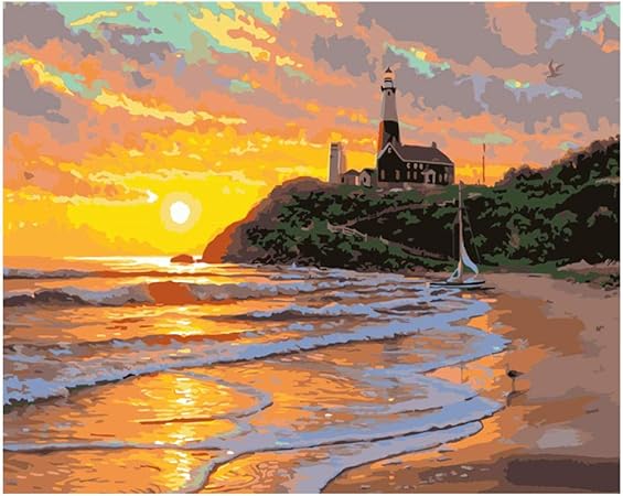 Pintar Por Numeros Para Paisaje Costero Adultos Ninos Pintura Por Numeros Con Pinceles Y Pinturas Decoraciones Para El Hogar 40 X 50 Cm Sin Marco Arte Y Manualidades Pintura Por Numeros