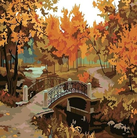 Pintura Por Numeros Kits Puente De Paisaje De Otono Diy Pintura Al Oleo Pintar Por Numeros Para Adultos Ninos Seniors Junior Con Pinceles Y Pinturas Decoracion Del Hogar 40x50 Cm Sin Marco