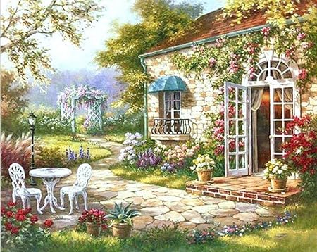 Zhxx Acrilico Kits De Pintura Pintar Por Numeros Adultos Jardin Romantico Paisaje Digital Moderno Arte Pared Pintura Regalo Para Ninos Para Nino Sobre Lienzo Sin Marco 40x50cm Amazon Es Hogar