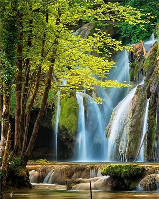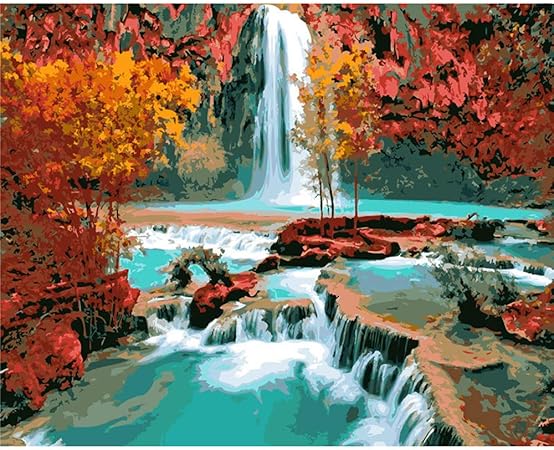 Pintar Por Numeros Paisaje De La Cascada Kit De Pintura Al Oleo Para Bricolaje Para Adultos Y Ninos Para Decoracion De Casa Decoracion De Pared 40x50 Cm Sin Marco Amazon Es Hogar