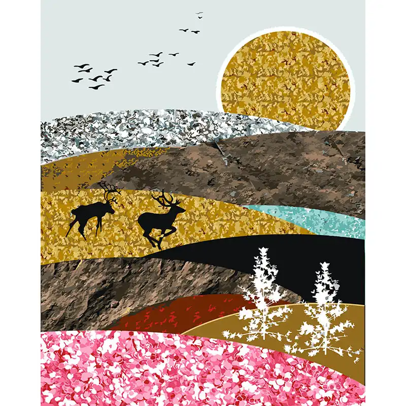 Pintura Al Oleo Abstracta De Pajaros Y Ciervos Animales Coloridos Pintar Por Numeros Pintura Y Caligrafia Aliexpress