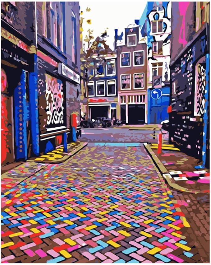 Pintar Por Numeros Adultos Ninos 40x50cm Con Marco De Madera Silueta De La Ciudad Diy Pintura