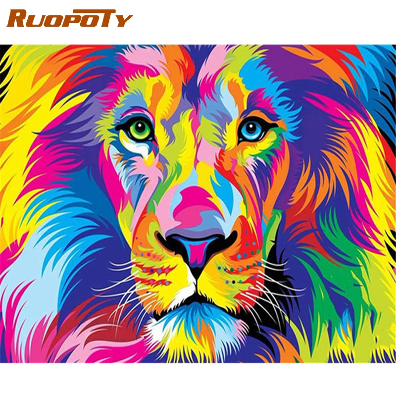 Ruopoty Cuadro De Animales De Leon Coloridos Cuadro Artesanal Por Numeros Lienzo Por Numeros Para Decoracion Del Hogar Regalo Unico Arte De Pared Pintura Por Numeros Aliexpress