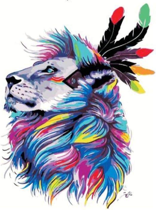 Jjyyh Cuadro Para Pintar Por Numeros Diseno De Leon De Colores Amazon Es Juguetes Y Juegos