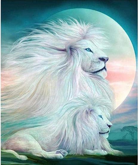 Mnbhj Kit De Pintura Por Numeros Pintar Por Numero Para Adultos Ninos Principiantes 16x20 Inch Lona Mural Decoracion Fotos De Leon Blanco Con Marco Actividades Creativas Arte Y Manualidades