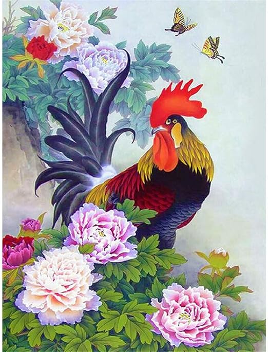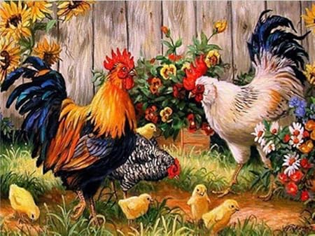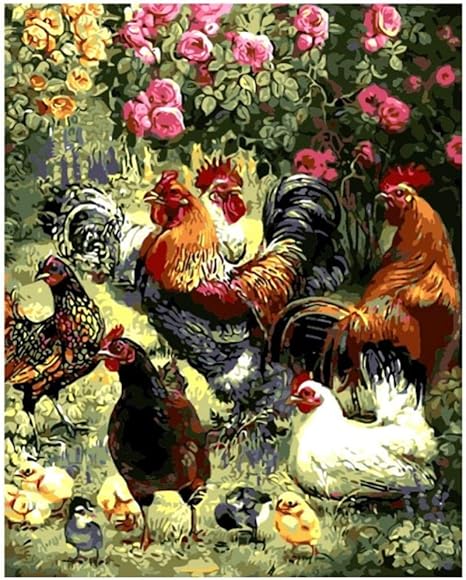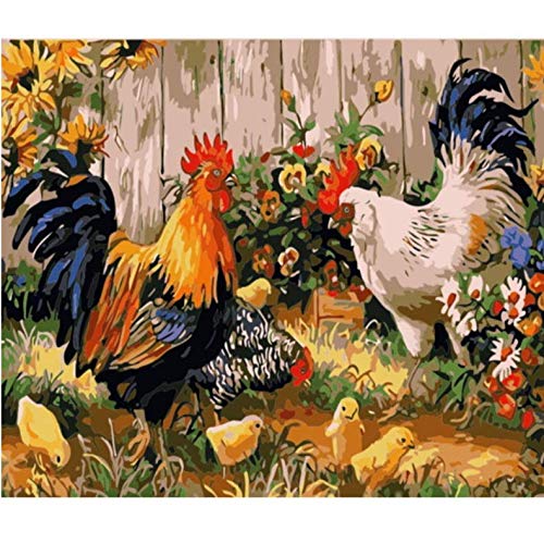 Bricolaje Pintura Para Adultos Por Numeros Gallo Pollo Familia Flores Animales Para Ninos Edad 8 9 Regalo 40x50cm Sin Marco Amazon Es Hogar