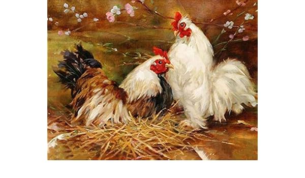 Wacydsd Pintura Por Numeros Para Adultos Gallo Y Gallina Obra Unica De Decoracion Para El Hogar Regalo Amazon Es Juguetes Y Juegos