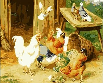 Pintar Por Numeros Aves De Corral Para Adultos Ninos Pintura Por Numeros Con Pinceles Y Pinturas 16x20 Pulgadas Amazon Es Bricolaje Y Herramientas