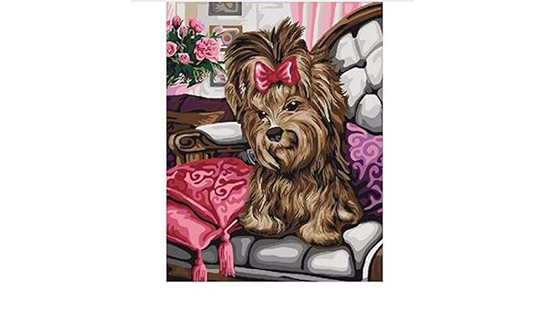 Jfzjfz Pintura Diy Por Numeros Lienzo Pintura Al Oleo Yorkshire Terrier Regalo Para Adultos Ninos Kit De Decoracion De La Casa 40 50 Cm Sin Marco Amazon Es Hogar