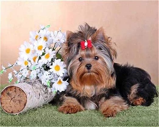 Dkipn Pintar Por Numeros Pintura Digital Yorkshire Terrier Y Flor Oleo Imagenes De Animales Pintura De La Lona Para La Decoracion Del Arte De La Pared 40 50cm Sin Marco Amazon Es Hogar