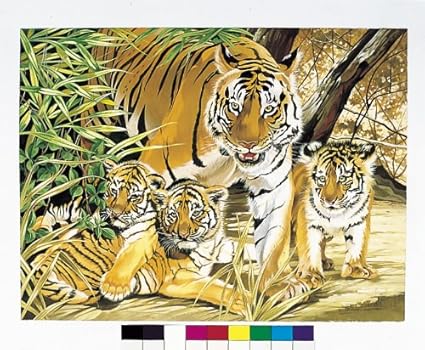 Reeves Pintar Por Numeros Set De Pintura Grande Diseno De Tigre Y Cachorros Amazon Es Oficina Y Papeleria