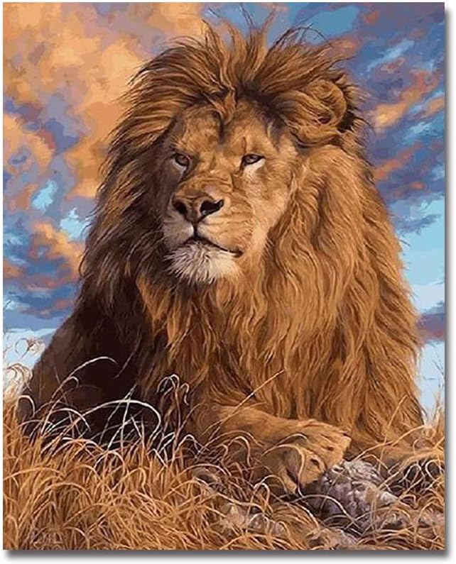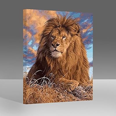 Boshun Pintar Por Numeros Para Adultos Ninos Pintura Por Numeros Con Pinceles Y Pinturas Decoraciones Para El Hogar Colorido Leon 16 20 Pulgadas Sin Marco Amazon Es Juguetes Y Juegos