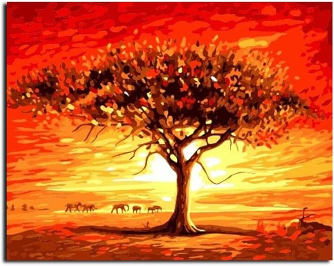 Boshun Pintar Por Numeros Para Adultos Ninos Pintura Por Numeros Con Pinceles Y Pinturas Decoraciones Para El Hogar Atardecer 16 20 Pulgadas Con Marco De Madera Actividades Creativas Pintura Por Numeros