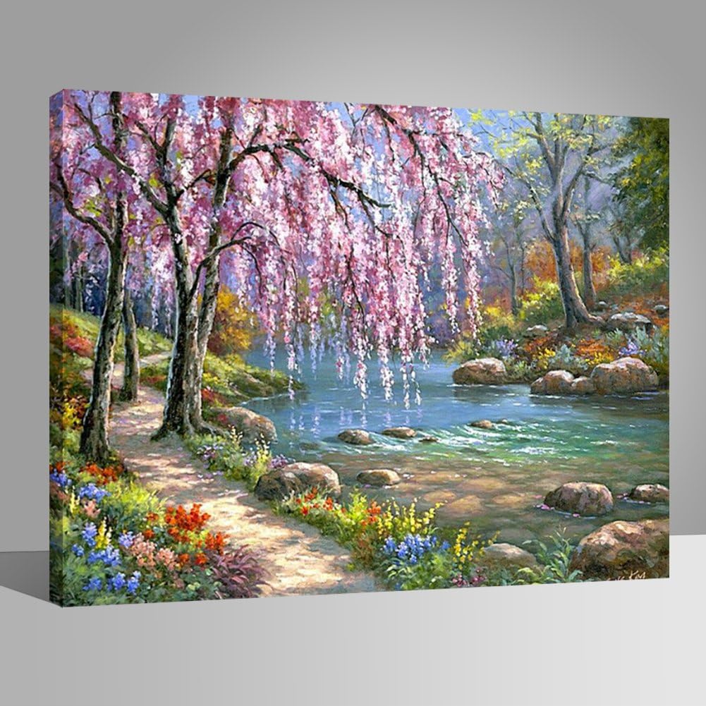 Boshun Pintar Por Numeros Para Adultos Ninos Pintura Por Numeros Con Pinceles Y Pinturas Decoraciones Para El Hogar Parque De Flores De Cerezo 16 20 Pulgadas Con Marco De Madera Pintura Por Numeros