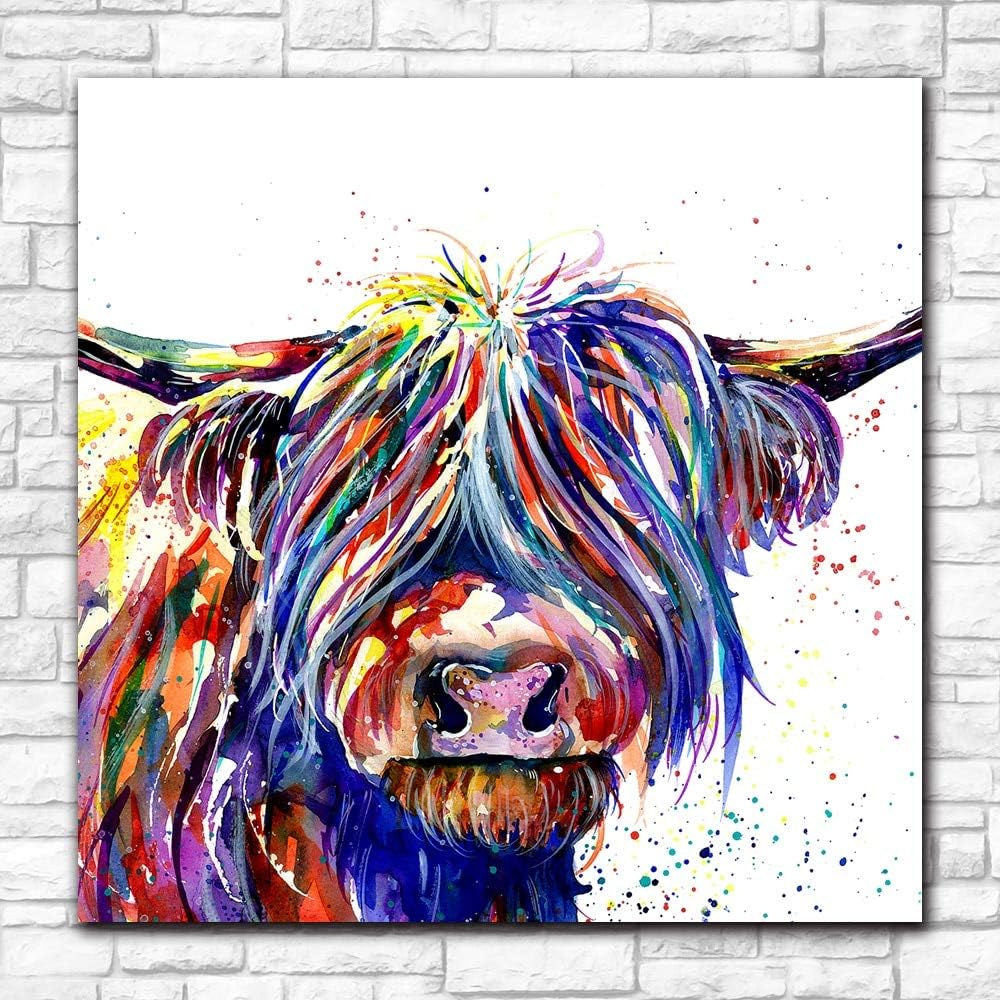 Hetingyue Diy Pintar Por Numeros Vaca De Las Tierras Altas Resumen Diy Pintura Por Numeros Diy Pintura Al Oleo Digital Sobre Lienzo Regalo Caja Combo 40x40cm Amazon Es Hogar