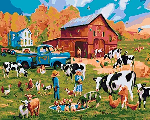 Frgiad Pintado A Mano Animal Vaca Pintura Al Oleo Por Numeros Cuadro De La Pared Animal Pintura Al Oleo Sobre Lienzo Vacas Arte De La Pared Pintura Decoracion Del Hogar Amazon Es Juguetes