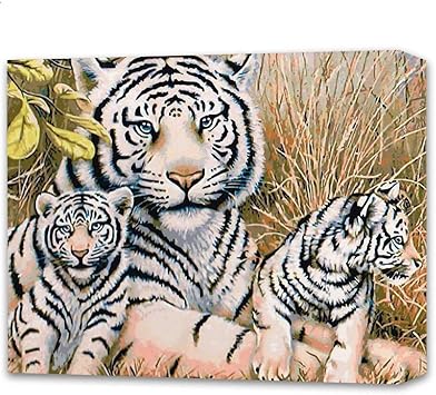 Twyydp Pintar Por Numeros Para Adultos Ninos Hierba Animal Tigre Blanco Madre Y 2 Hijos Regalo De Cumpleanos 60x75cm Amazon Es Juguetes Y Juegos