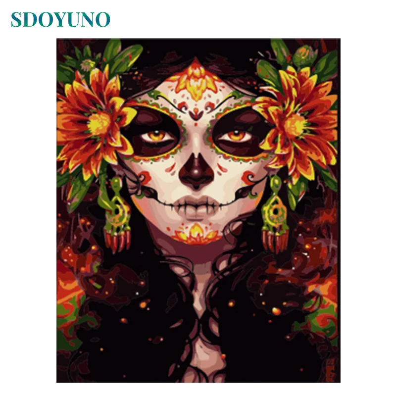 Imagenes De Sdoyuno Cuadros Pintura Por Numero Pintar Por Numeros Oleo Por Numeros Calavera Chica Pintura Por Numeros Pintura Digital Sin Marco 60x75cm En Lienzo Para El Hogar Decoracion Pintura Por Numeros