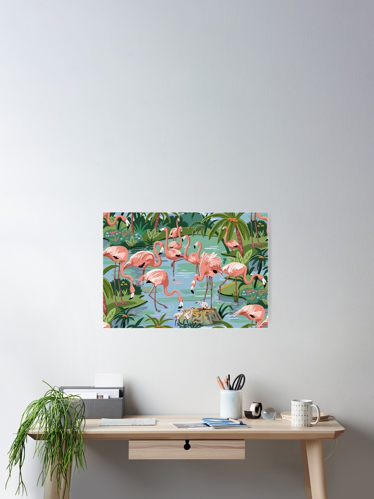 Poster Flamingo Lagoon Pintura Estilo Vintage Por Numero De Vinpauld Redbubble