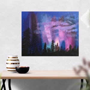 Pintura Unica Arte De Las Auroras Boreales Arte De Aurora Etsy