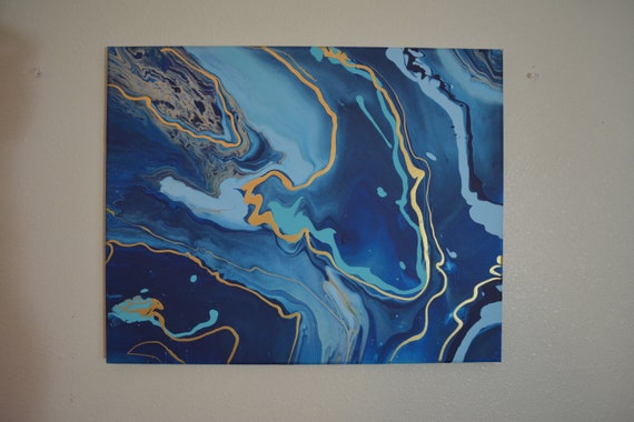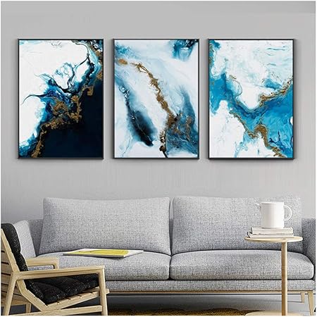 Hyfbh Color Abstracto Azul Dorado Lienzo Pintura Cartel E Impresion Decoracion Unica Pared Arte Cuadros Para Sala De Estar 50x70 Cm Sin Marco Amazon Com Mx Hogar Y Cocina