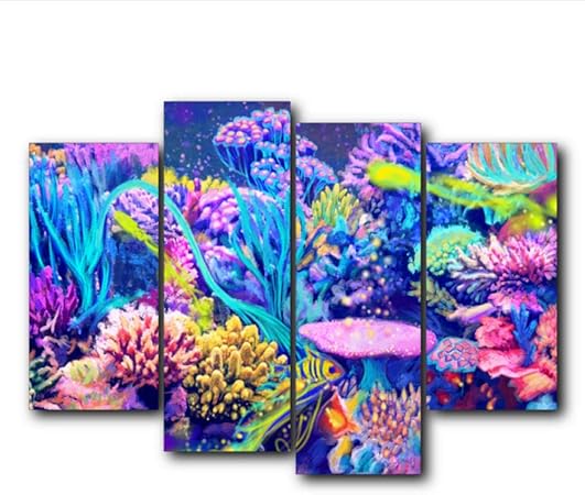 Nvhaishiwo Unica Con 4 Paneles Lienzo Pintura Caligrafia Mundo Submarino Peces Coral Carteles E Impresiones Arte De La Pared Hogar Bebe Decoracion De La Sala De Estar Salon Amazon Es Hogar