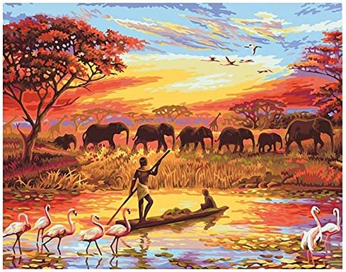 Zhxx Pintar Por Numeros Adultos Pescador Y Elefantes Paisajes Diy Arte De La Pared Moderno Arte De La Lona Pintura Unica Regalo Decoracion Para El Hogar 40x50cm Con Marco Amazon Es Hogar