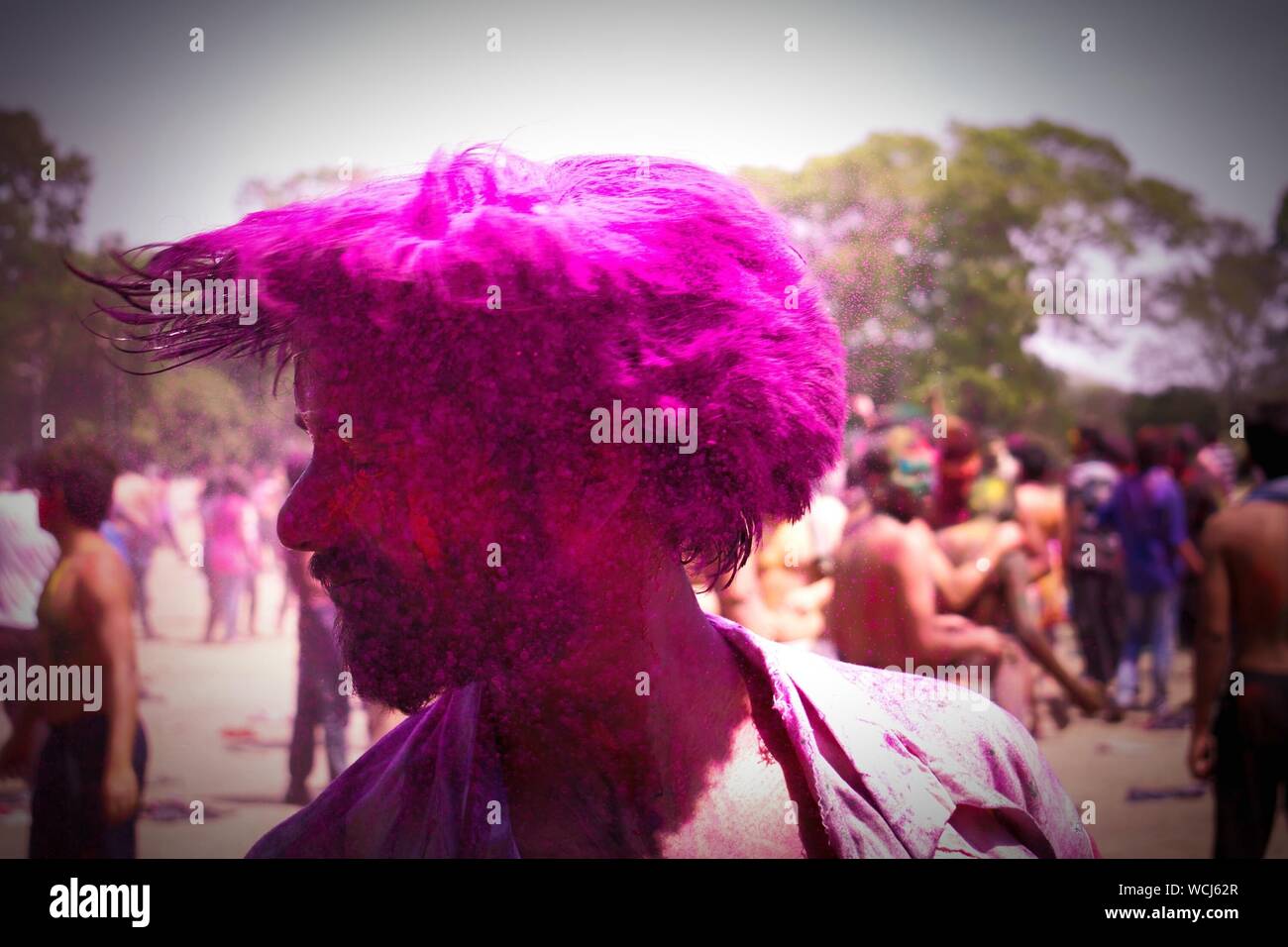 El Hombre Despide El Cabello Con Pintura En Polvo Durante Holi Fotografia De Stock Alamy