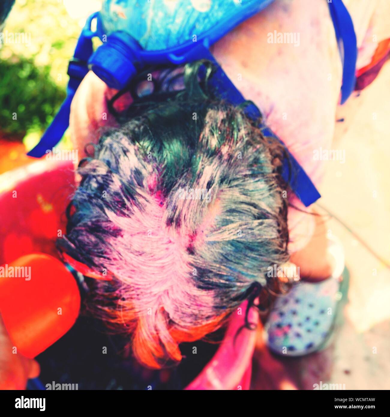 Un Alto Angulo De Vista De Chico Con Pintura En Polvo En La Cabeza Fotografia De Stock Alamy