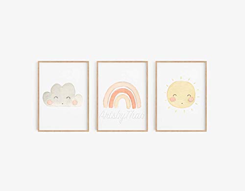 Amazon Com Kids Room Nursery Rainbow Wall Art Print Set Of 3 Art Prints 8x10 Cloud Rainbow Sun Watercolor Painting Home Decor Unframed 8x10 Handmade