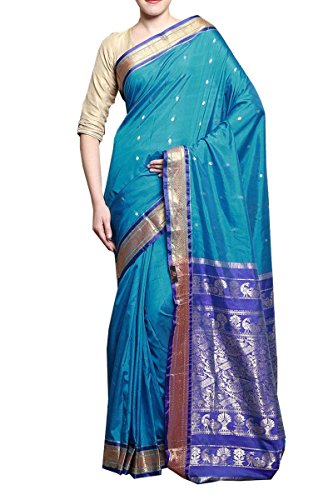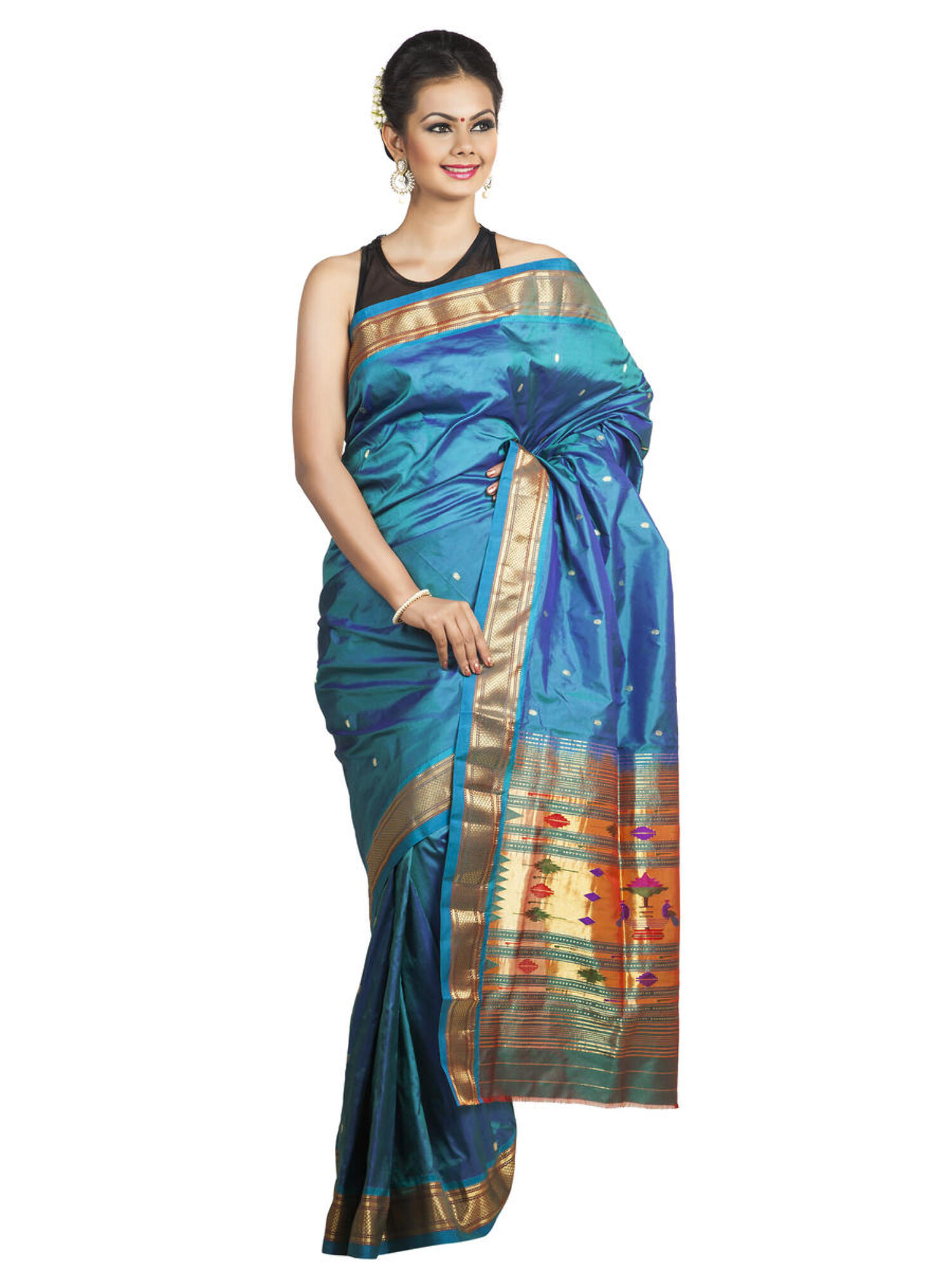 Buy Ocean Blue Semi Paithani Silk Saree Online At Best Price Karagiri