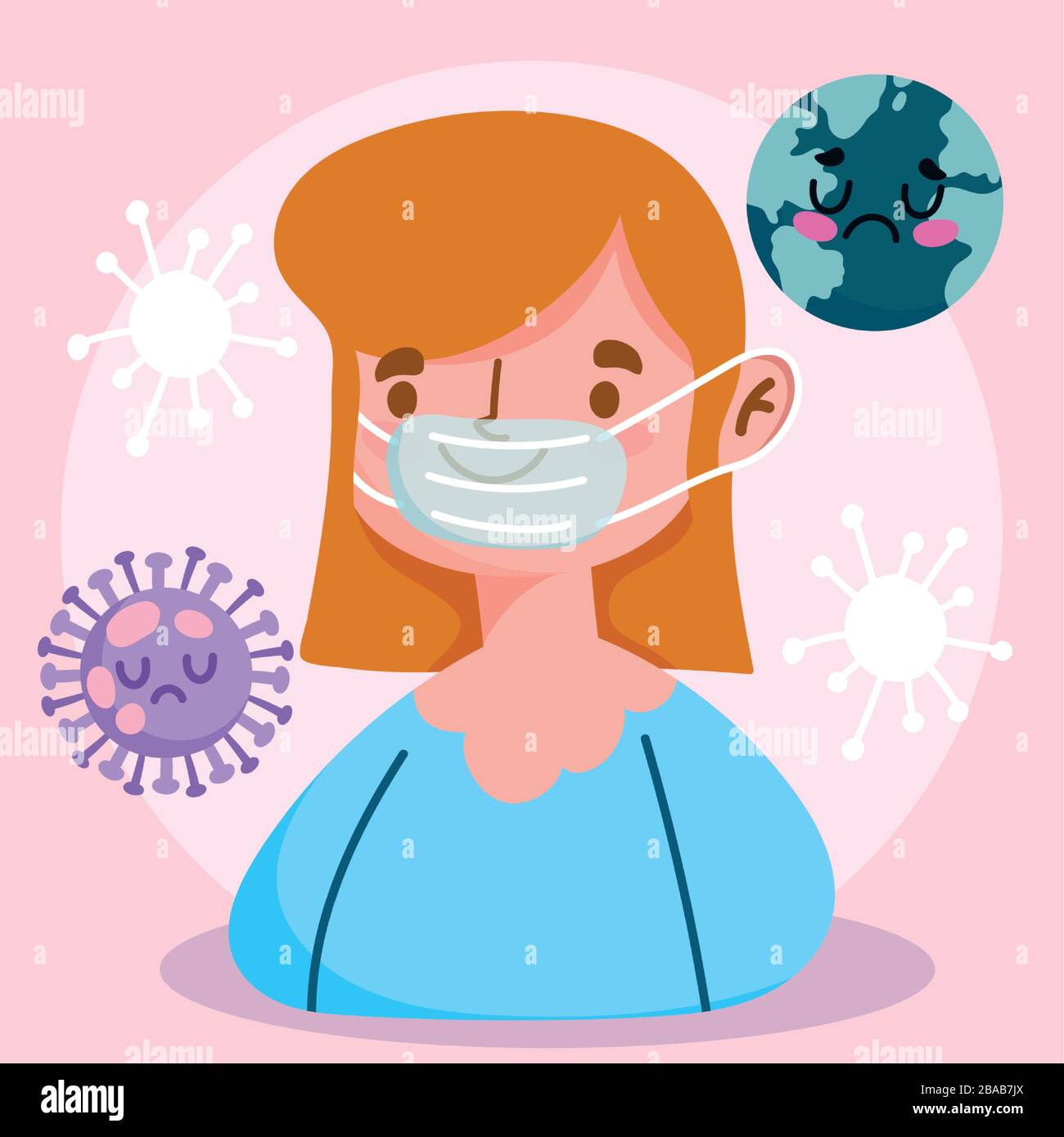 Sick Girl With Medical Mask In Hospital Bed Flat Vector Illustration Child With Virus Disease Cartoon Character Kid With Cold Patient Relaxing Under Blanket Isolated On White Background Premium Vector In