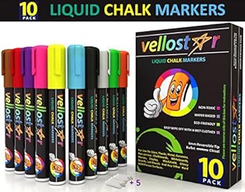 Amazon Com Vellostar Marcadores De Gis Liquida Calidad Premium 10 Pack 5 Punta Extra Puntas De Hijo Seguro Y No Toxico 6 Mm Reversible Gran Para Pintar En Vidrio Y Superficies No Porosas Regalo