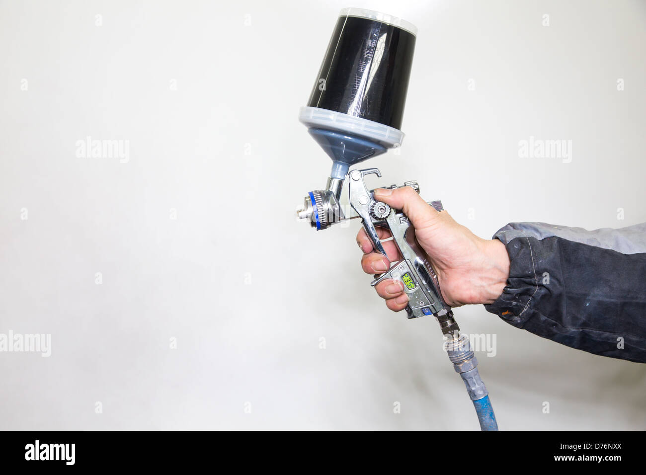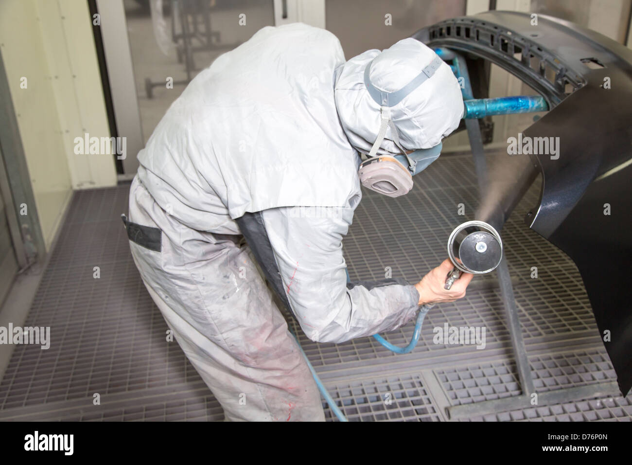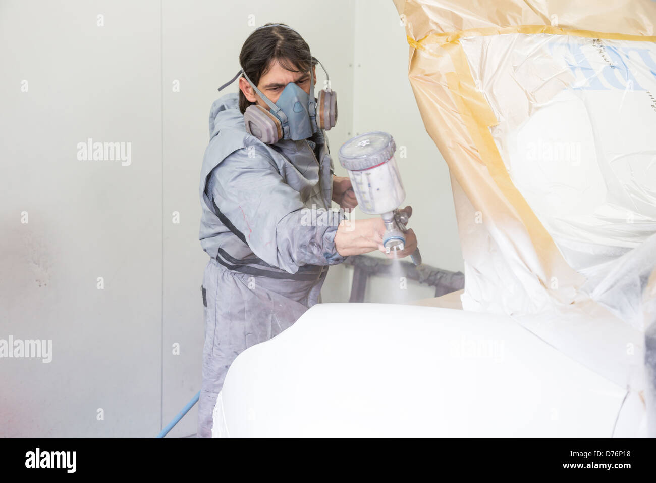 Alquiler Cuerpo Pintor Rociar Pintura O Color De Carroceria En Un Garaje O Un Taller Con Un Aerografo Fotografia De Stock Alamy