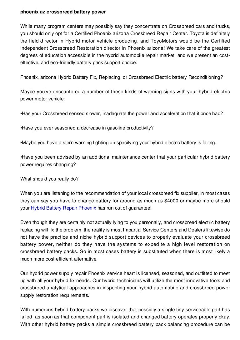 Phoenix Arizona Crossbreed Power Supply Restore By Toyomotors