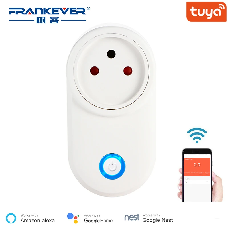 Frankever 16a Wifi Smart Socket Israel Plug Outlet With Power Monitoring Works With Google Home Alexa Ifttt Tuya Smart Life App Smart Power Socket Plug Aliexpress
