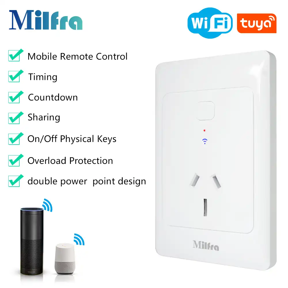 Milfra Wifi Smart Socket Neutral Wire Required Australia Power Outlet Voice Phone Control For Assistant Alexa Tuya Smart Life Electrical Sockets Aliexpress