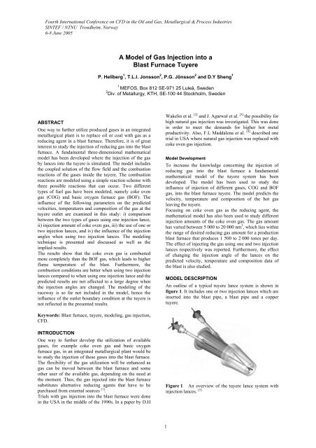A Model Of Gas Injection Into A Blast Furnace Tuyere Sintef